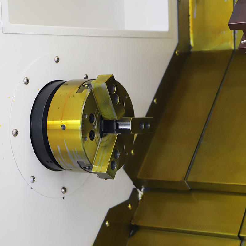 本机为整体式床座,全封闭防护罩(选配半封闭式),集中润滑滑装置润滑各滑动面,使整体获得了较佳性价比,效率高、精度高、可靠性好,可以车削内外圆柱面、圆柱面、圆弧面和其他回转及端面、螺纹,并配有四工位自动转位选择刀架,工作可靠,可实现多工位连续加工。